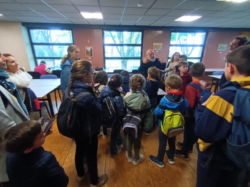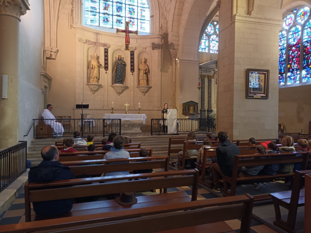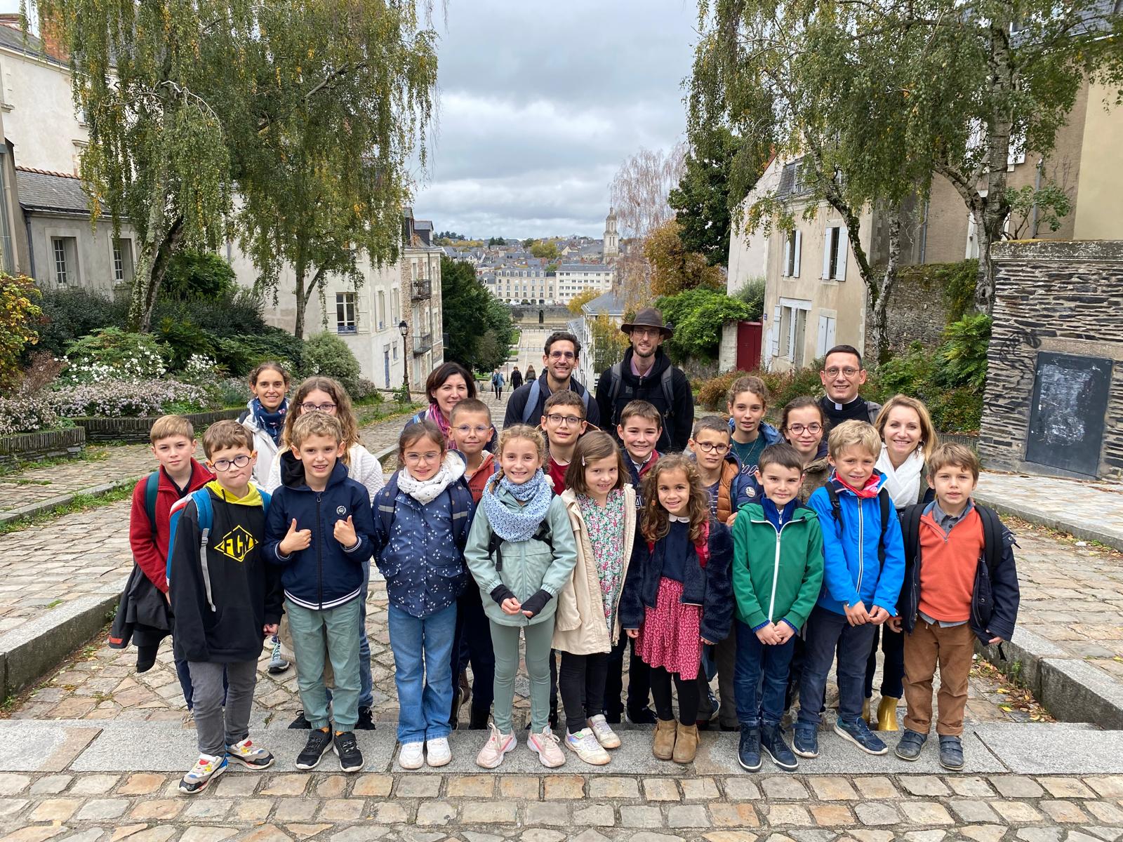 Le groupe composé de 18 enfants, 6 parents et le père Guillaume, est parti en TER à Angers.