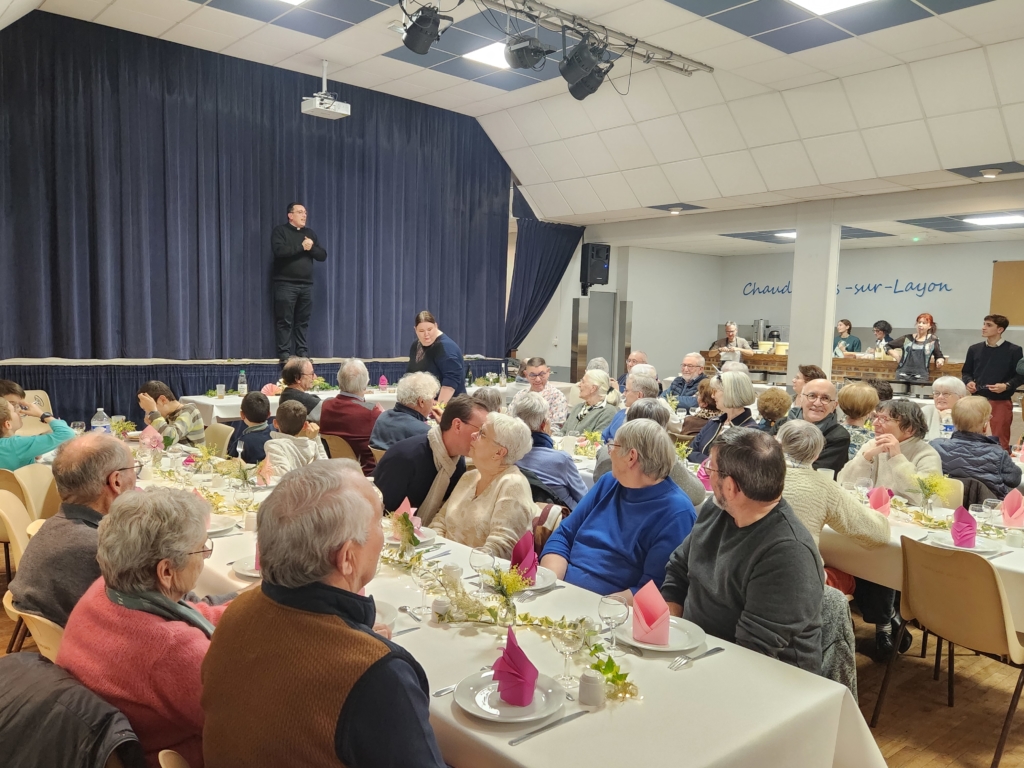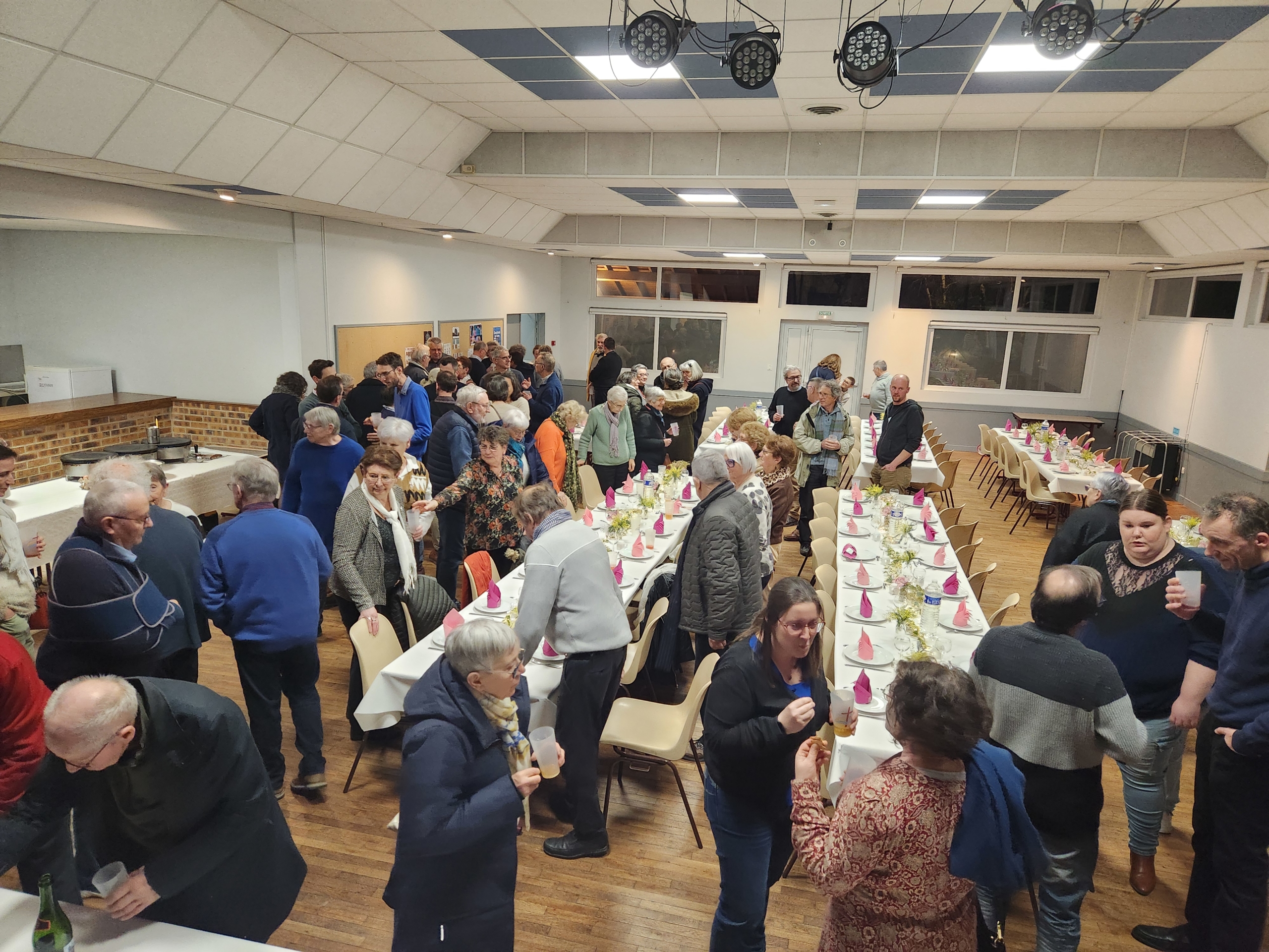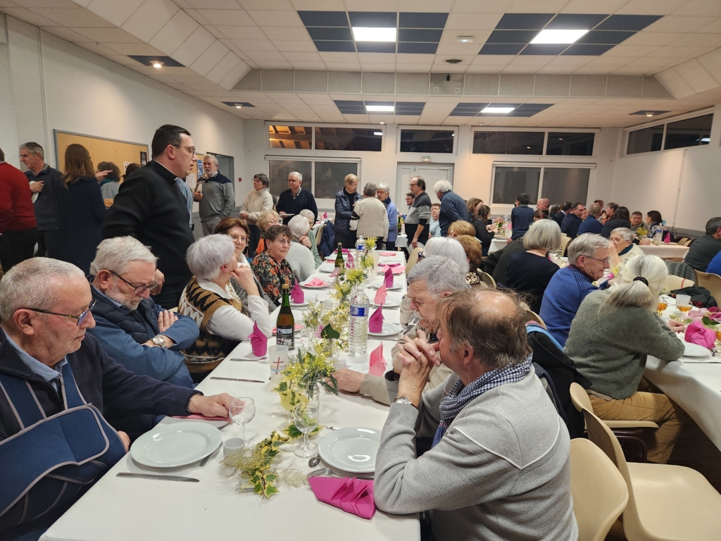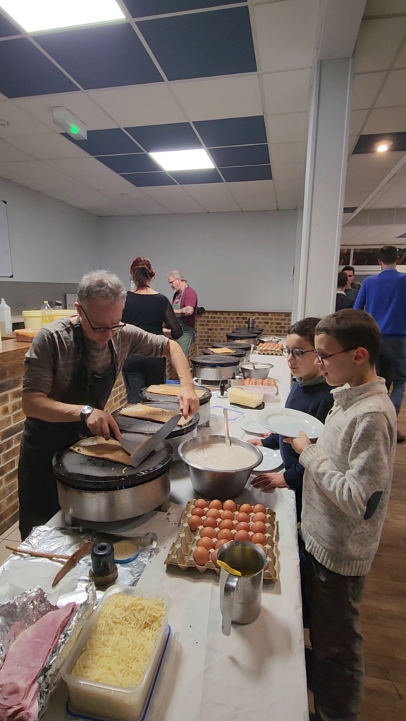 Ce vendredi 30 janvier 2026, une centaine de paroissiens s’est réunie pour le traditionnel repas annuel des bénévoles de la paroisse. Encore cette année, à l’occasion de la Chandeleur , notre talentueux crêpier nous a régalés avec ses délicieuses galettes et crêpes, le tout accompagné d’un bon cidre breton !