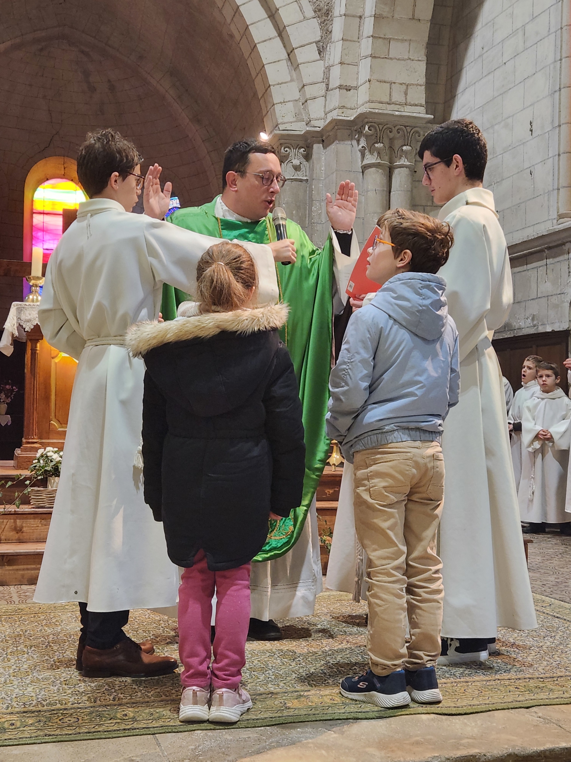 Giulia et Gabin seront baptisés le dimanche de Pâques 5 avril.Ils ont vécu les dernières étapes du Catéchuménat ce dimanche 15 février : l’Imposition des mains et l’Onction du Saint-Chrême.