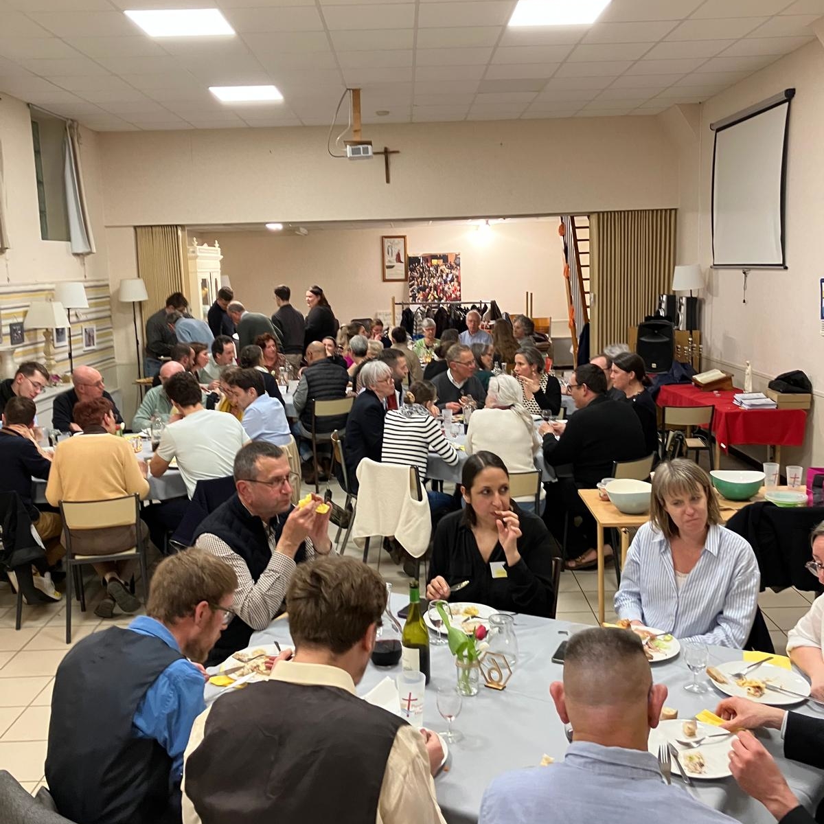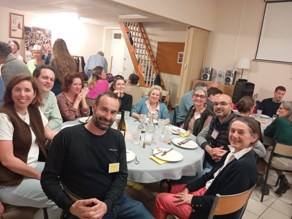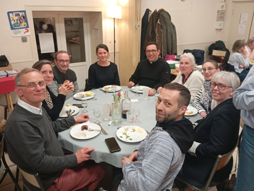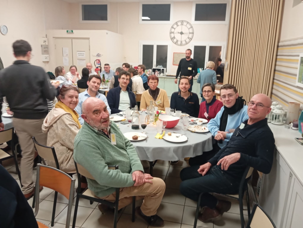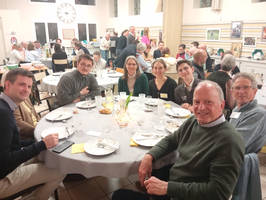 55 personnes s’étaient réunies ce jeudi 5 mars à la salle St Maurille pour la soirée de clôture du parcours Alpha qui s’est déroulé sur notre paroisse du 20 novembre au 12 février .