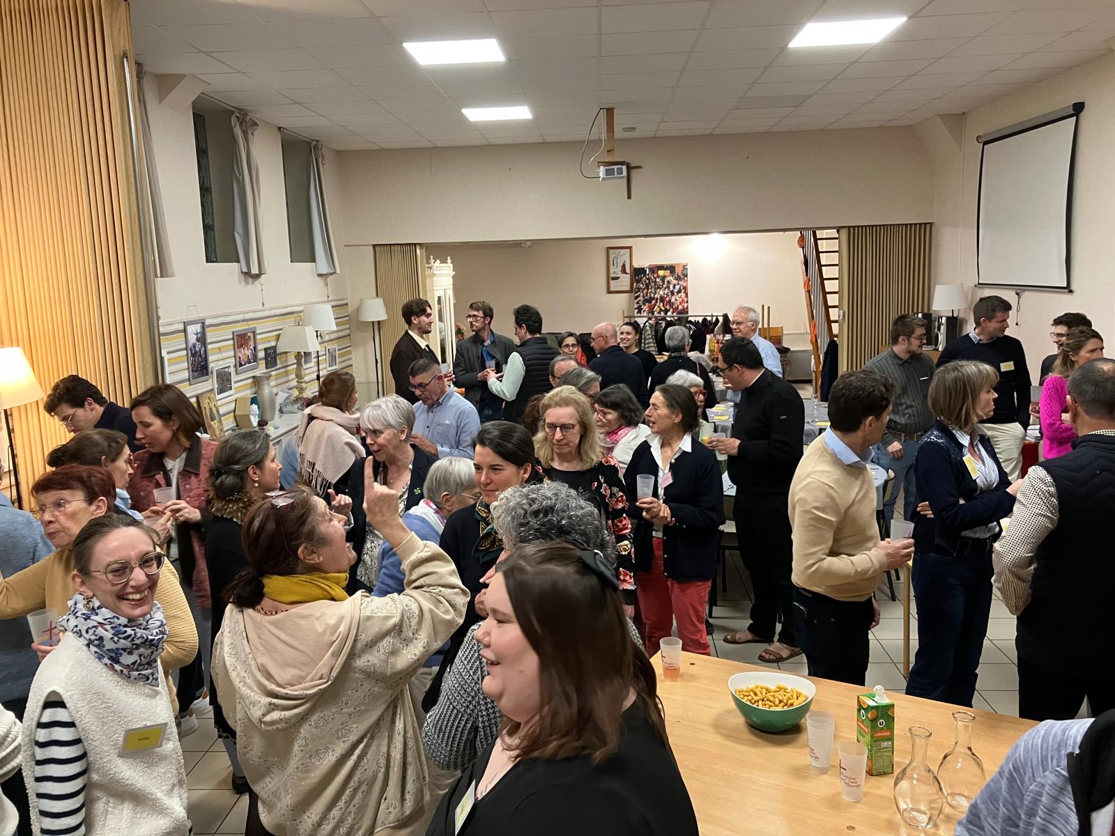 55 personnes s’étaient réunies ce jeudi 5 mars à la salle St Maurille pour la soirée de clôture du parcours Alpha qui s’est déroulé sur notre paroisse du 20 novembre au 12 février .