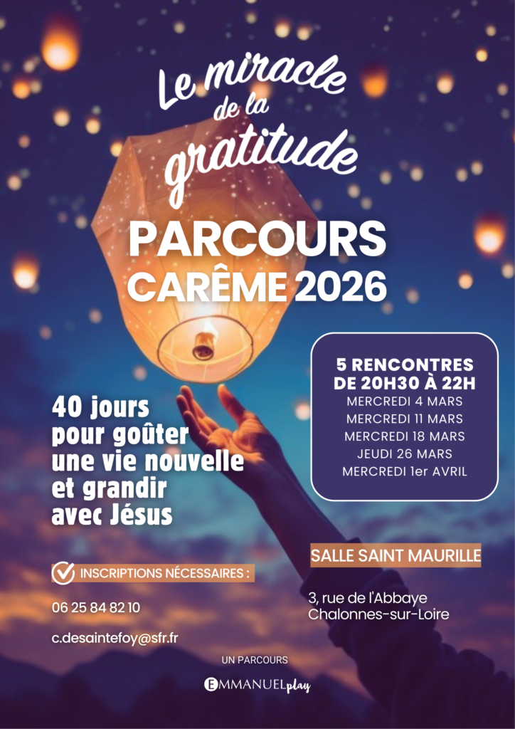 La gratitude est la plus bienfaisante et transformante des habitudes intérieures : ses effets bénéfiques sont stupéfiants ! N’attendez pas : rejoignez-nous et inscrivez-vous ! par mail : c.desaintefoy@sfr.fr, ou sur la feuille au fond de l’église Saint-Maurille, afin que nous commandions les livrets (7 euros).