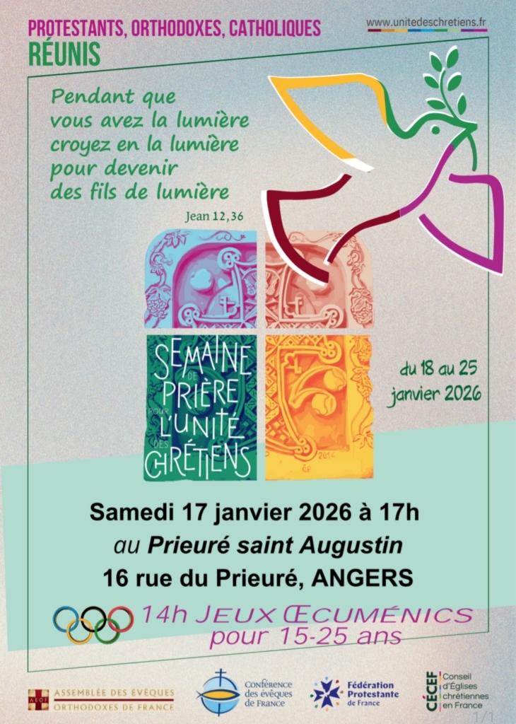 A cette occasion, un grand jeu sur l’œcuménisme est organisé pour les 15-25 ans à 14h00, le samedi 17 janvier, suivi d’une célébration à 17h00 au Prieuré Saint Augustin à Angers.