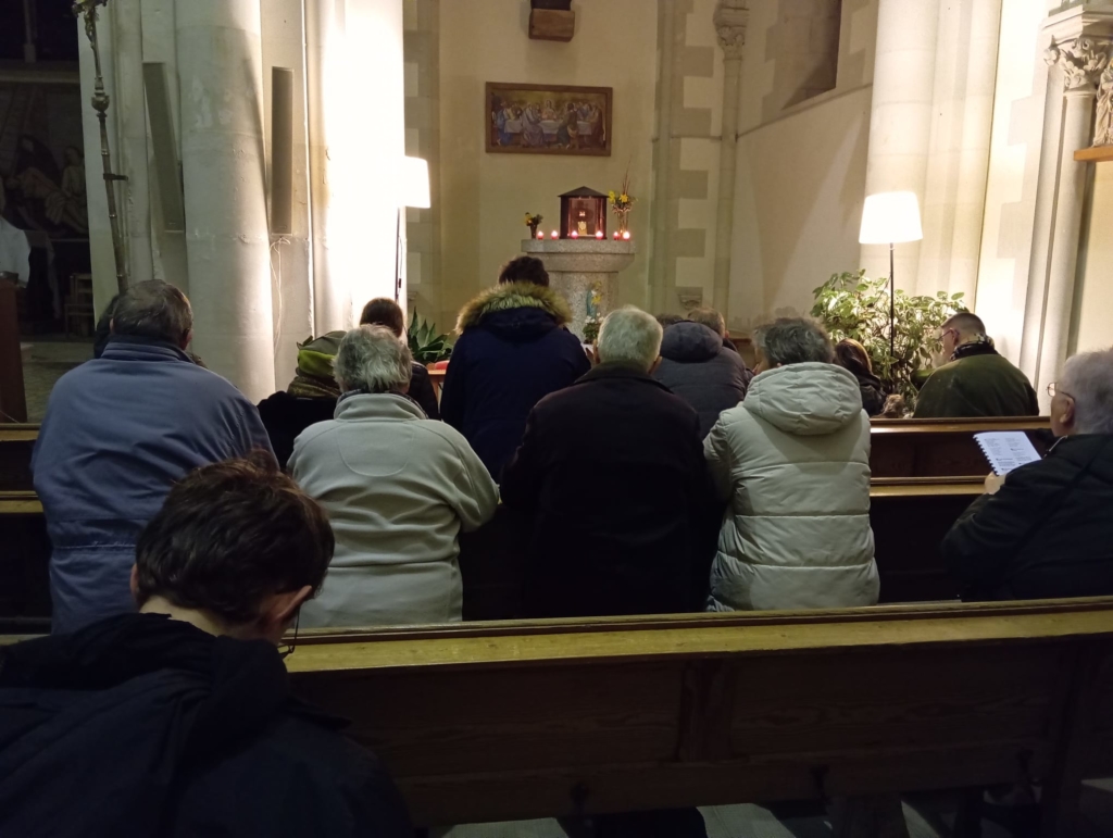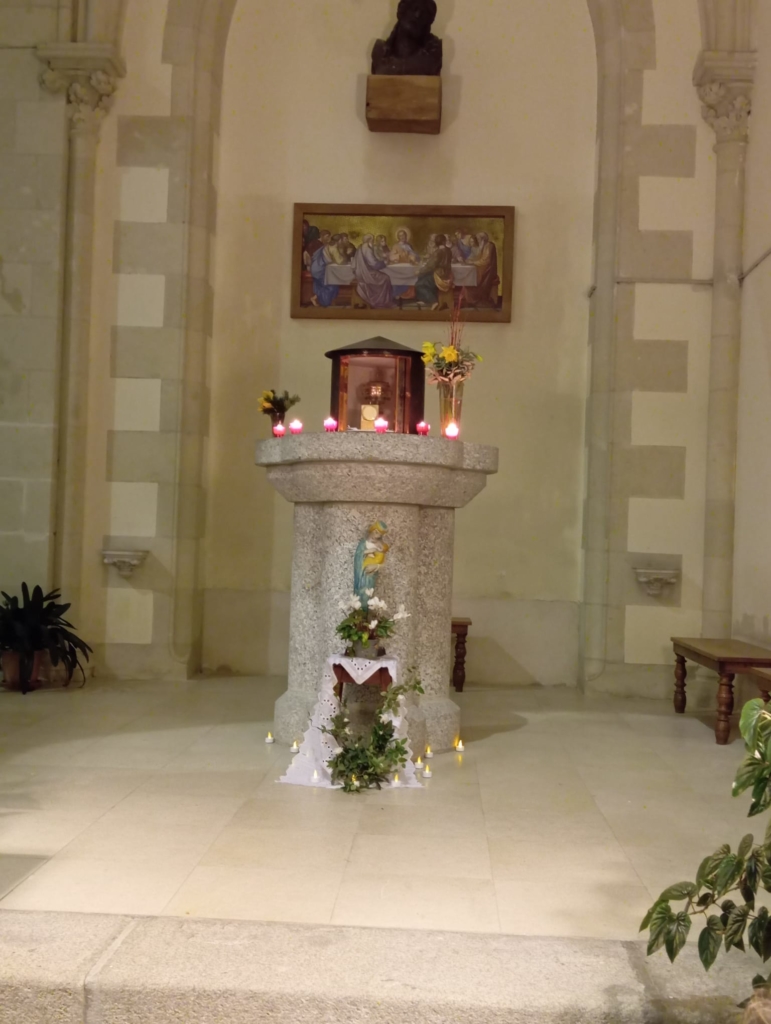 -Un temps d’Adoration devant le tabernacle ouvert avec une alternance de chants méditatifs et de silence.